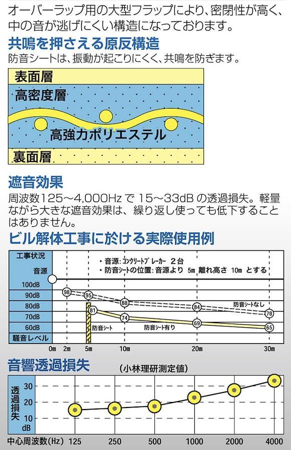 柔軟で高密度のため、一般の工事用シートに比べ,優れた防音性を有します。