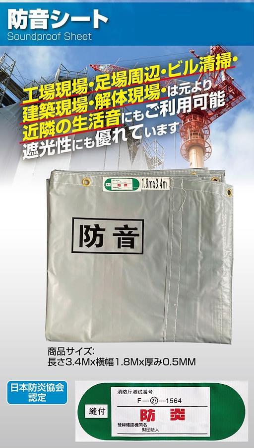 防音シート 1.8m×3.4m 軽量タイプ 厚み 0.5mm 10枚 防炎 認定品 工事用 ポイント利用