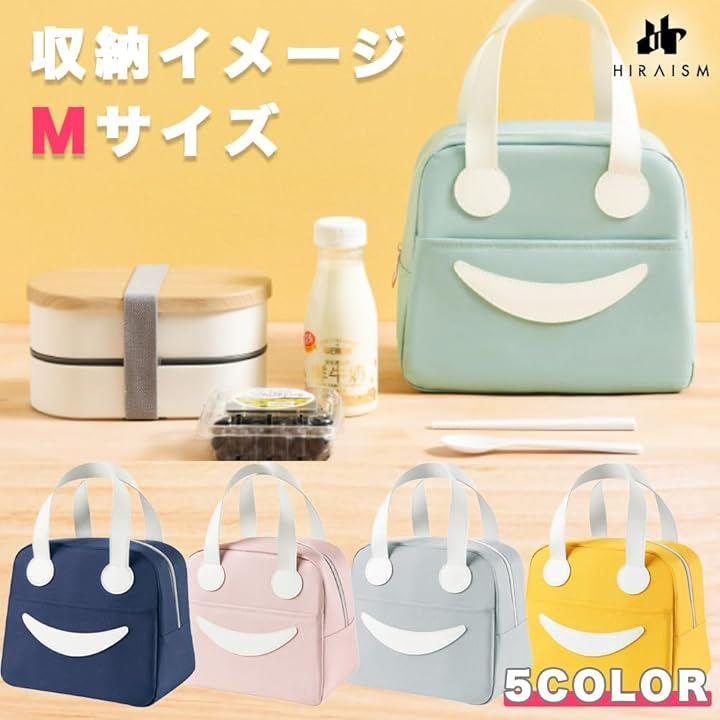 「商品内容」ランチ保冷バッグ <Mサイズ> 幅:23.5cm 奥行き:14cm 高さ:20.5cm <Lサイズ> 幅:24cm 奥行き:13cm 高さ:28cm <カラー>ネイビー, グレー, グリーン, ピンク, イエロー 備考:弁当、ペットボトル、お菓子類、缶ジュース等の収納が可能