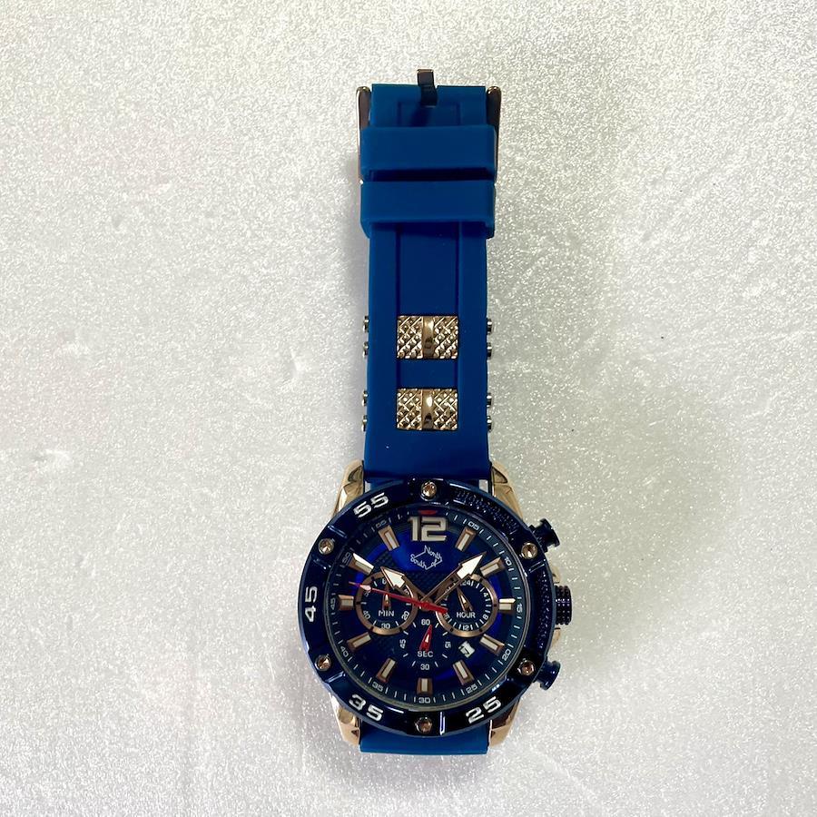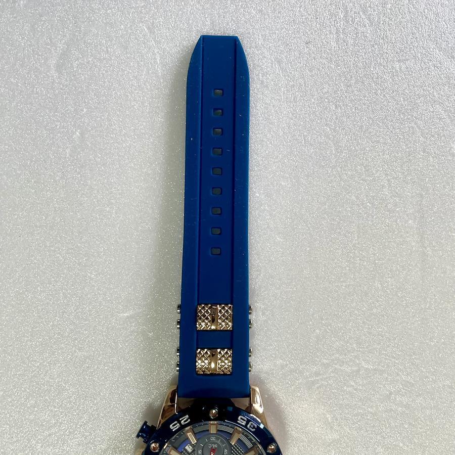- カラー: 青- 素材: シリコンバンド- 特徴: クロノグラフ機能- 付属品: 箱、取扱説明書- デザイン: スポーティーなデザイン- 文字盤: アナログ表示