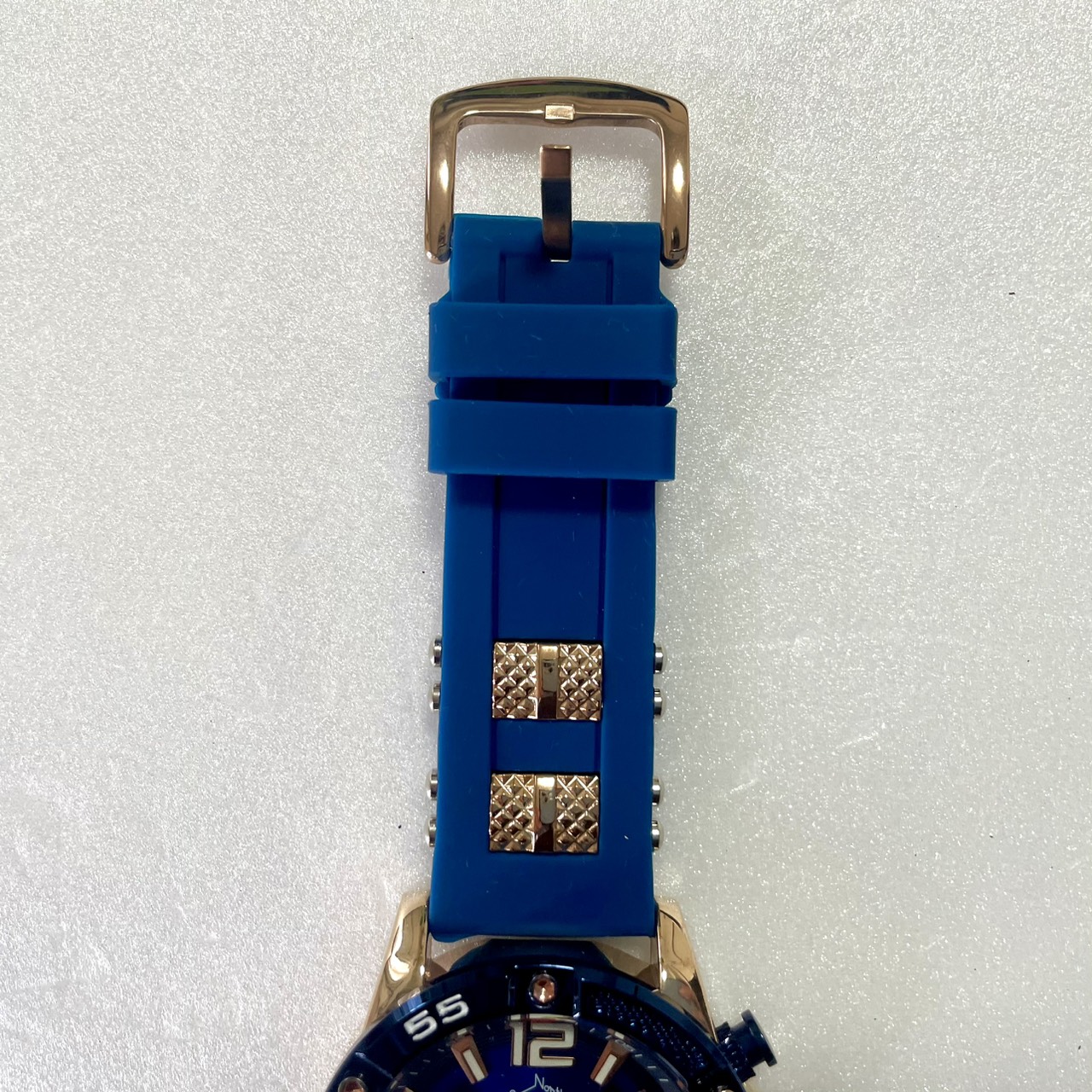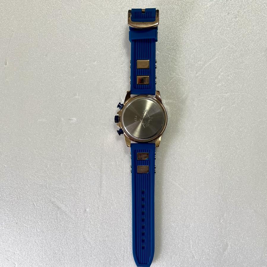 - カラー: 青- 素材: シリコンバンド- 特徴: クロノグラフ機能- 付属品: 箱、取扱説明書- デザイン: スポーティーなデザイン- 文字盤: アナログ表示
