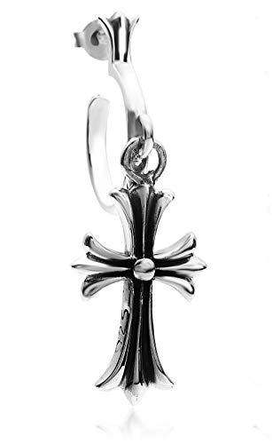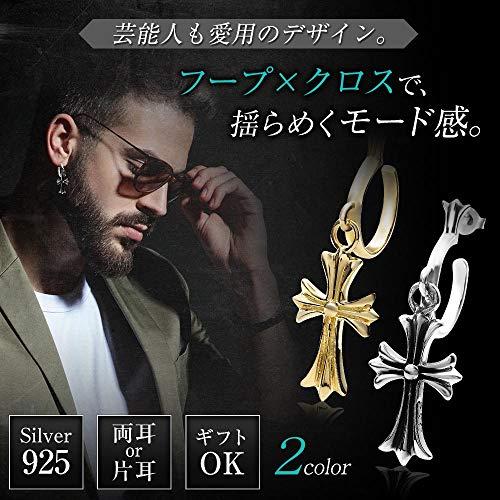 ?【 人気のクロスデザイン 】シルバー925クロスフープピアス。人気のフープにクロスを合わせたお洒落なフープクロスピアスです。芸能人も多く着用している人気のデザインです。
