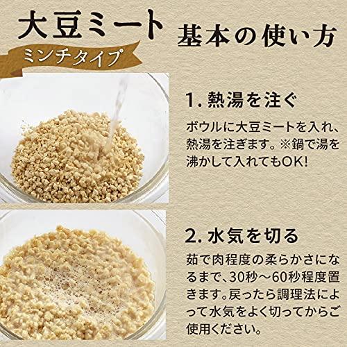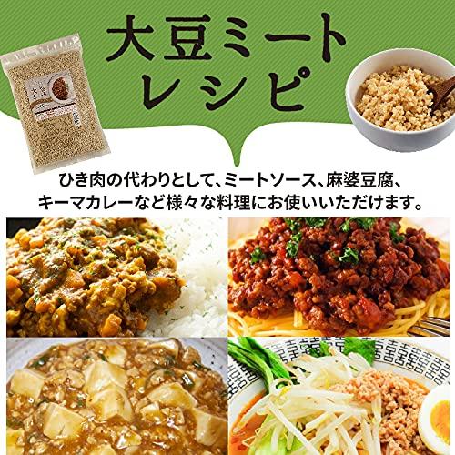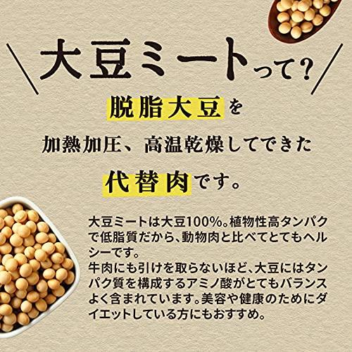 大豆ミートのミンチ(ひき肉)タイプです。栄養豊富な大豆を原料とし、加圧加熱・高温乾燥して作っています。お肉のように様々な料理に!大豆100%だからたんぱく質・食物繊維たっぷりで動物肉と比べてとてもヘルシー。お肉の代わりとしてハンバーグ・麻婆茄子・ミートソースなど、様々な料理にお使いいただけます。