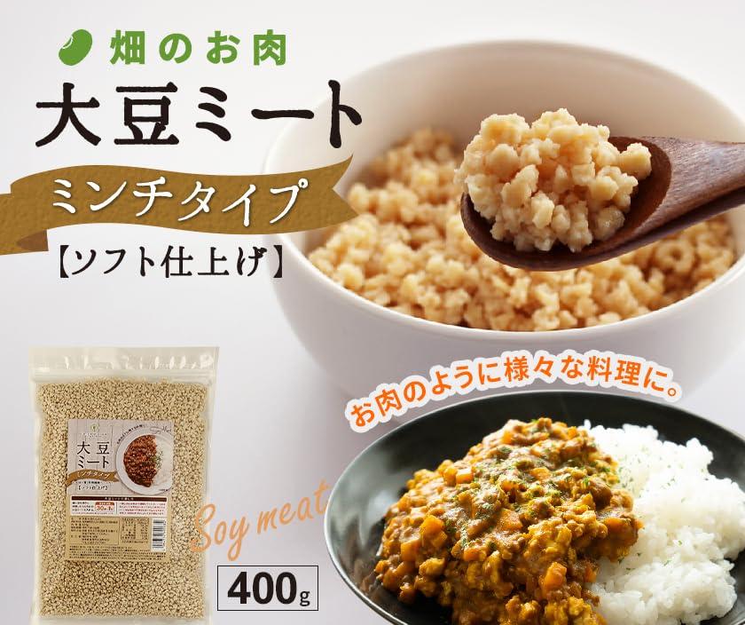 内容量:400g原材料名:粒状植物性たんぱく(脱脂大豆)(国内製造)食べやすくふんわり食感のソフト仕上げにしました。お肉のように様々な料理に!大豆100%だからたんぱく質・食物繊維たっぷりで動物肉と比べてとてもヘルシー。お肉の代わりとしてハンバーグ・麻婆茄子・ミートソースなど、様々な料理にお使いいただけます。大豆ミートのミンチ(ひき肉)タイプです。栄養豊富な大豆を原料とし、加圧加熱・高温乾燥して作っています。【重要】メーカーによる商品リニューアルに伴いパッケージ(内容量も含む)変更が行われた場合、新パッケージでお届け致します事ご了承願います。