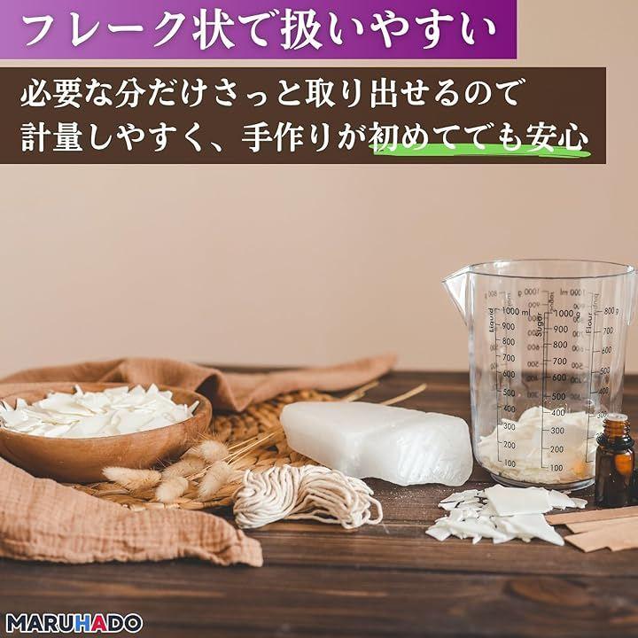 ゆっくりと溶けることで香りがふんわりと広がり、アロマキャンドルやハンドメイドキャンドルに最適。