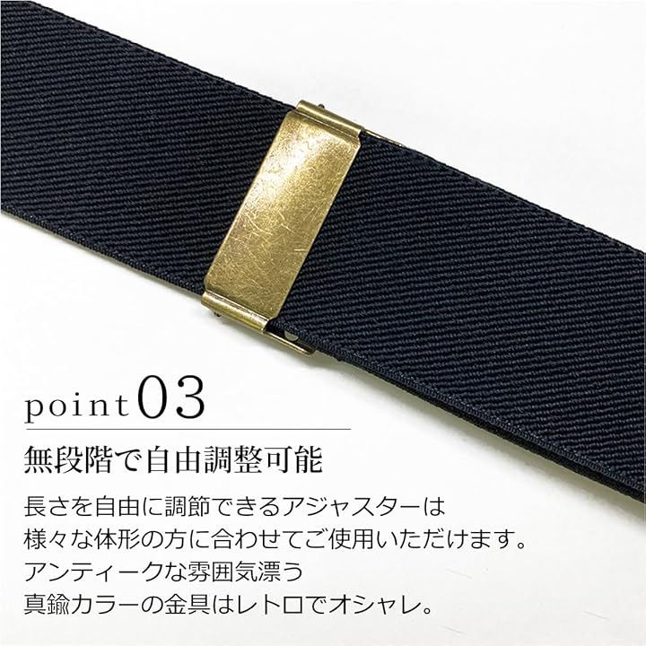 *フック式サスペンダーの特徴 ・ ベルトループに“引っ掛けて”固定する方式 ・ しっかり固定されて激しい動きでも外れにくい ・ 生地を挟まないため、パンツの生地を傷めにくい ・ 作業着・ワークパンツなど厚手のボトムスとも相性が良い *カラビナフックの付け根が360°自由に回転するため、ベルトループへの取り付けがスムーズ。