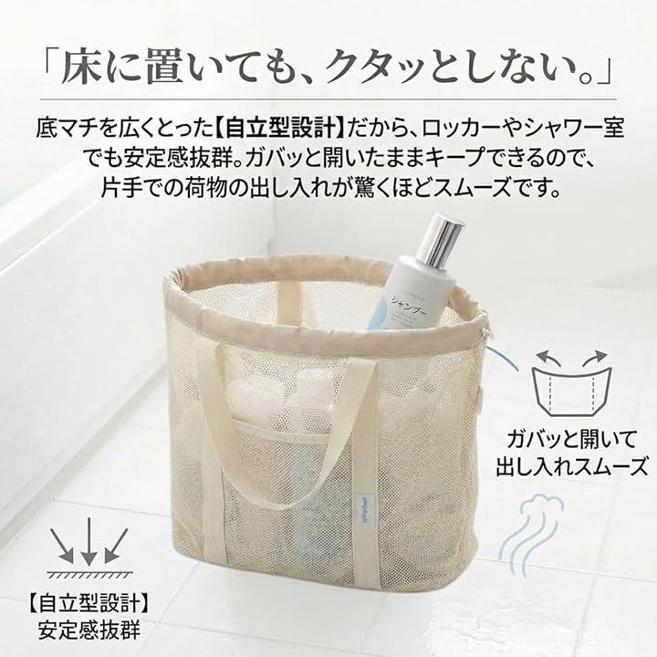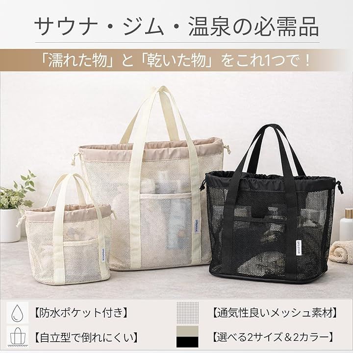 濡れた物と分けたいシーンや、温泉・ジム・スパ施設での着替え時に役立つ仕様です。