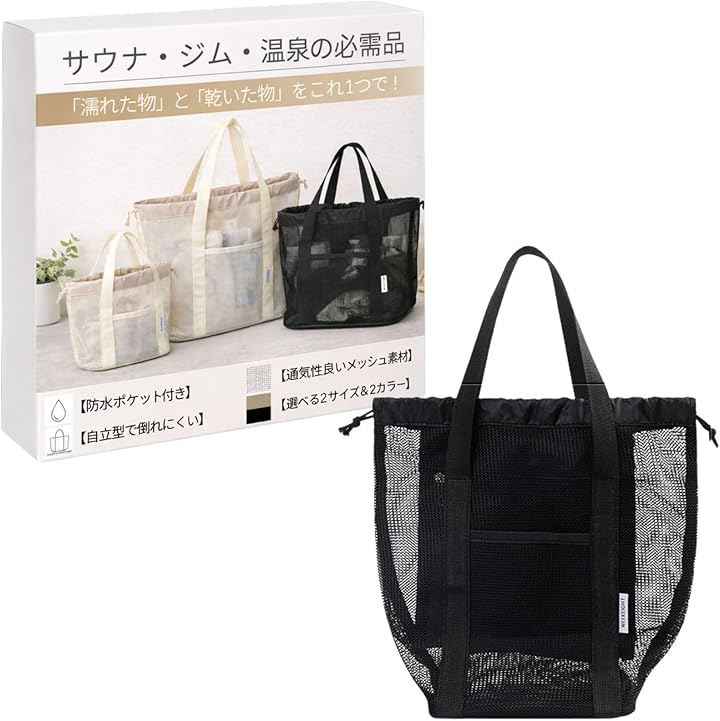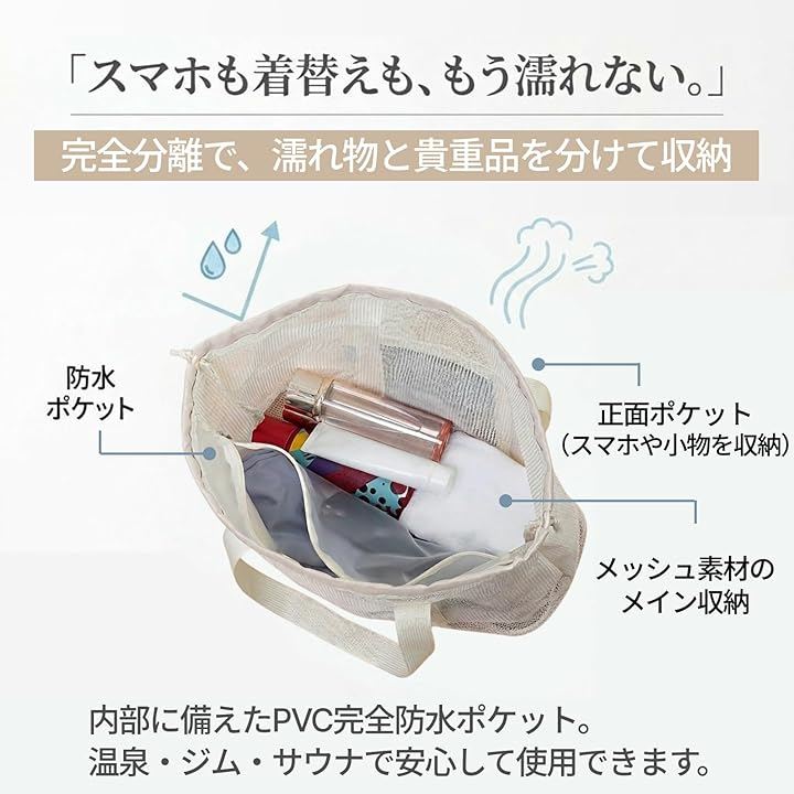 濡れた物と分けたいシーンや、温泉・ジム・スパ施設での着替え時に役立つ仕様です。