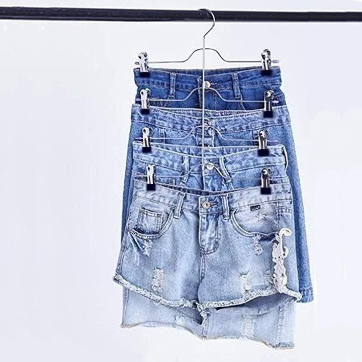 スカートやズボン、スラックスをクリップで挟むだけで、シワや型崩れから防いでたくさん収納できる、とても重宝するハンガーです。