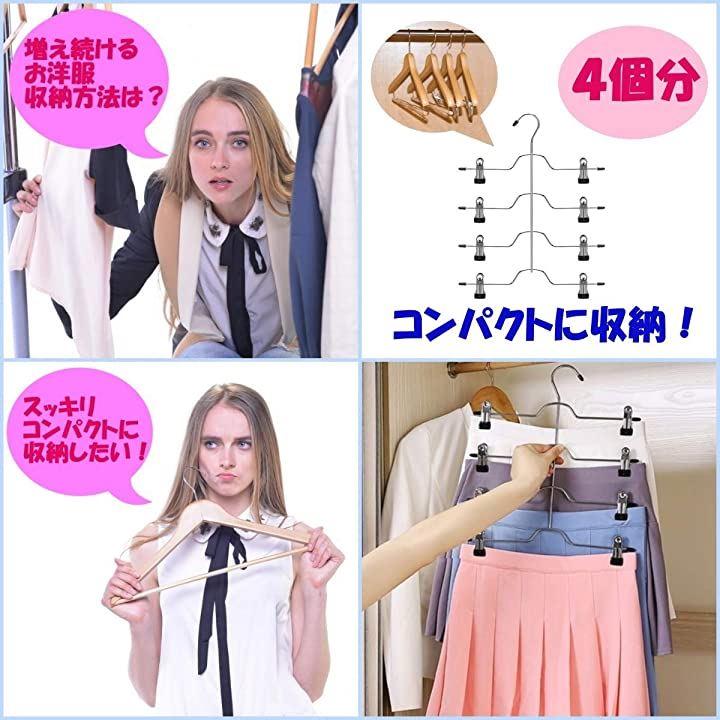 省スペースハンガースカートハンガーコンパクト収納4連ズボンハンガーS字型フック付き