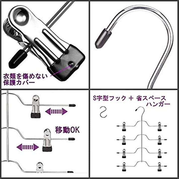 ・省スペースハンガー1本でボトムスを4本分収納できるスグレもの。このスカートハンガーは増え続けるボトムや衣類を見やすく、わかりやすく整理整頓してくれてので、クローゼットや衣装ラックの空間を 無駄なく使うことができます。