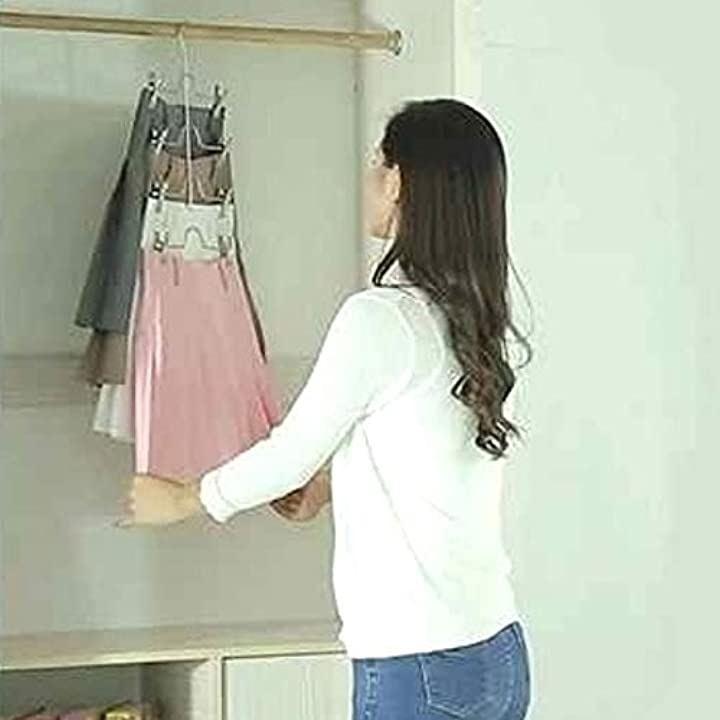 クローゼットの中やまとめきらないスカートやズボンなどの衣服をコンパクトにまとめてスッキリ収納することができる便利な省スペースハンガーです。