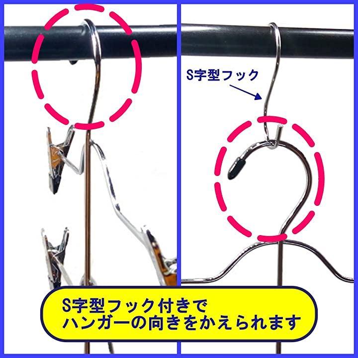 また、最初からS型フック付きなので、省スペースハンガーの方向を変えて吊るすことが出来てとても便利に使うことができます。