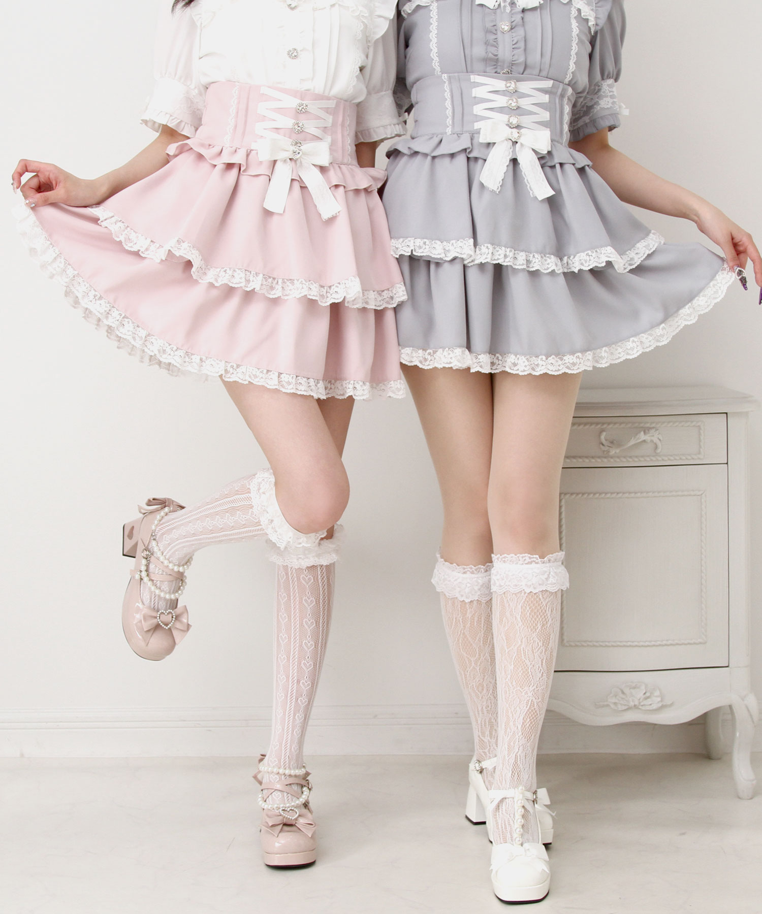 ウエストはキュッとスカートはレースフリルたっぷりでふわっと広がるシルエット感がかわいく
