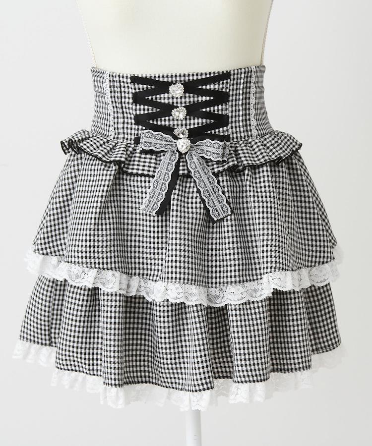 ウエスト部分はレースアップデザインになっていて、中心にビジューがついています。