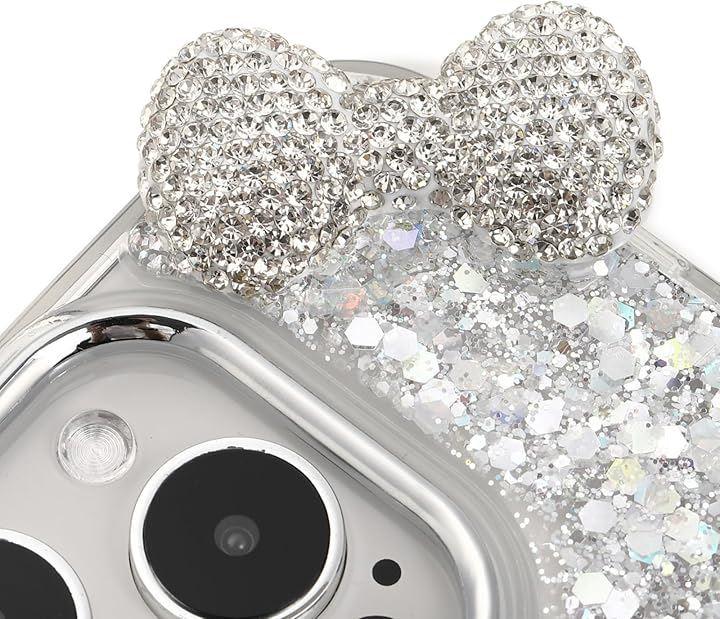 「ぎっしりラメx立体リボンのキラキラリボンケース」 ケース全体に大小さまざまなストーンとラメを惜しみなく敷き詰めた、まばゆい輝きが魅力のデザイン。