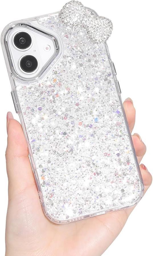 「ぎっしりラメx立体リボンのキラキラリボンケース」 ケース全体に大小さまざまなストーンとラメをびっしりと敷き詰め、角度を変えるたびにまばゆい輝きを放つラグジュアリーなデザイン。