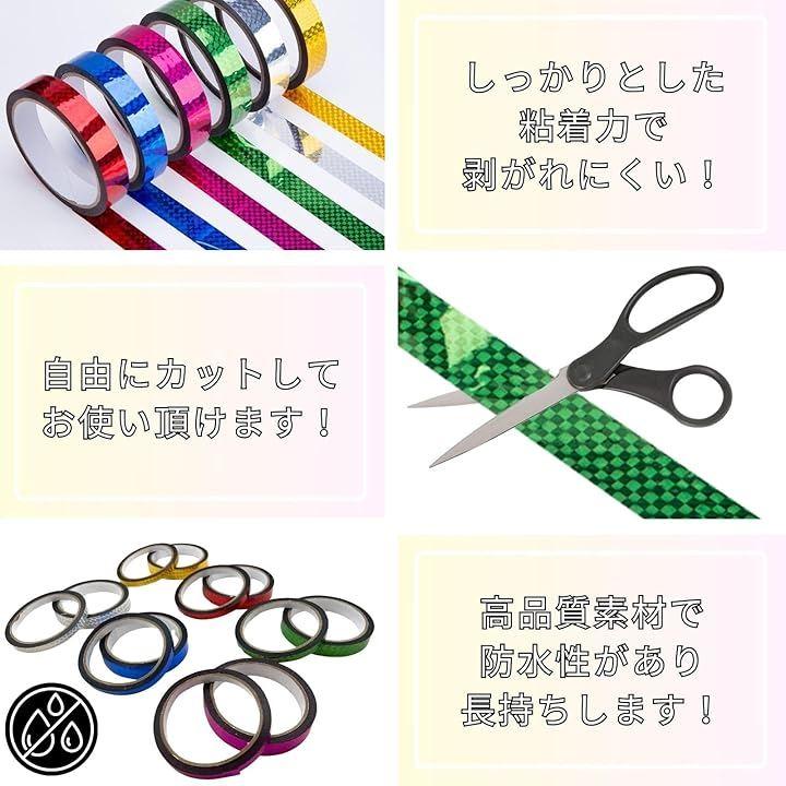 貼るだけで華やかでゴージャスな演出が可能な高輝度の光沢感のあるホログラム加工のキラキラテープです。
