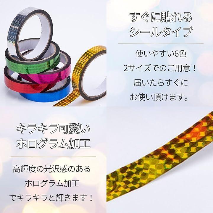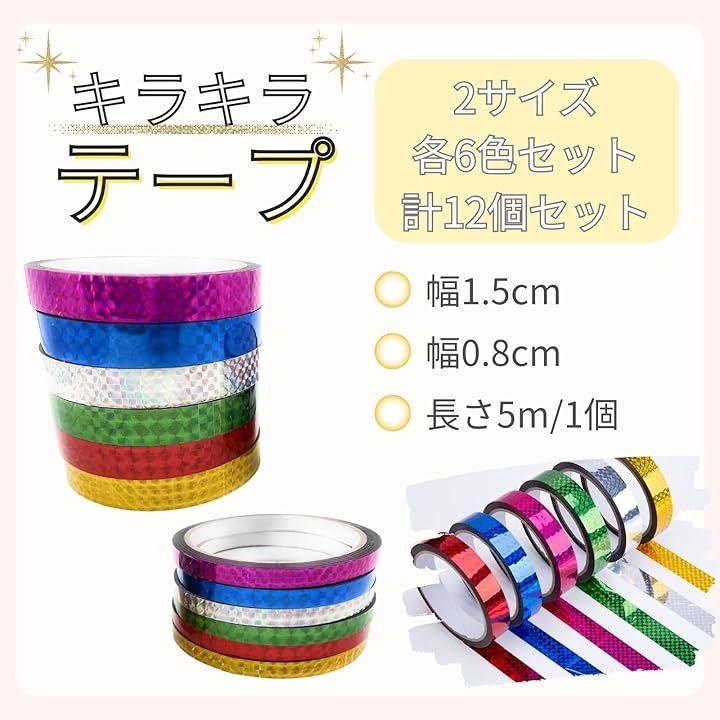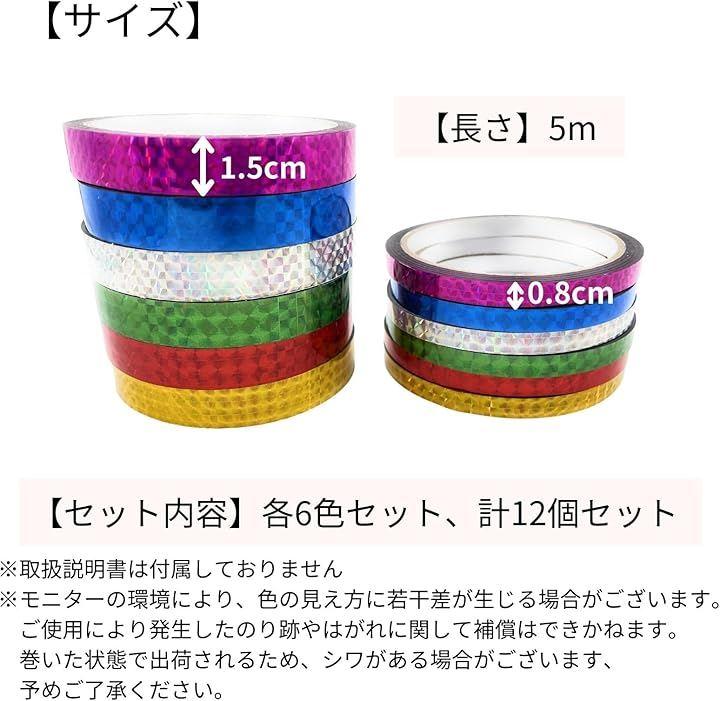 「サイズ」幅1.5cm、幅0.8cm、長さ5m「セット内容」各6色セット、計12個セット*取扱説明書は付属しておりません *モニターの環境により、色の見え方に若干差が生じる場合がございます。