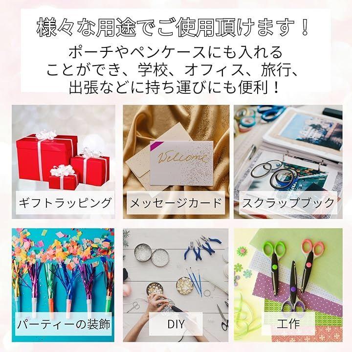 ギフトラッピング、メッセージカード作成、スクラップブック、デコレーション、DIY、工作、パーティーや誕生日の装飾など様々な用途でご使用頂けます。ポーチやペンケースにも入れる ことができ、学校、オフィス、旅行、出張などに持ち運びにも便利。