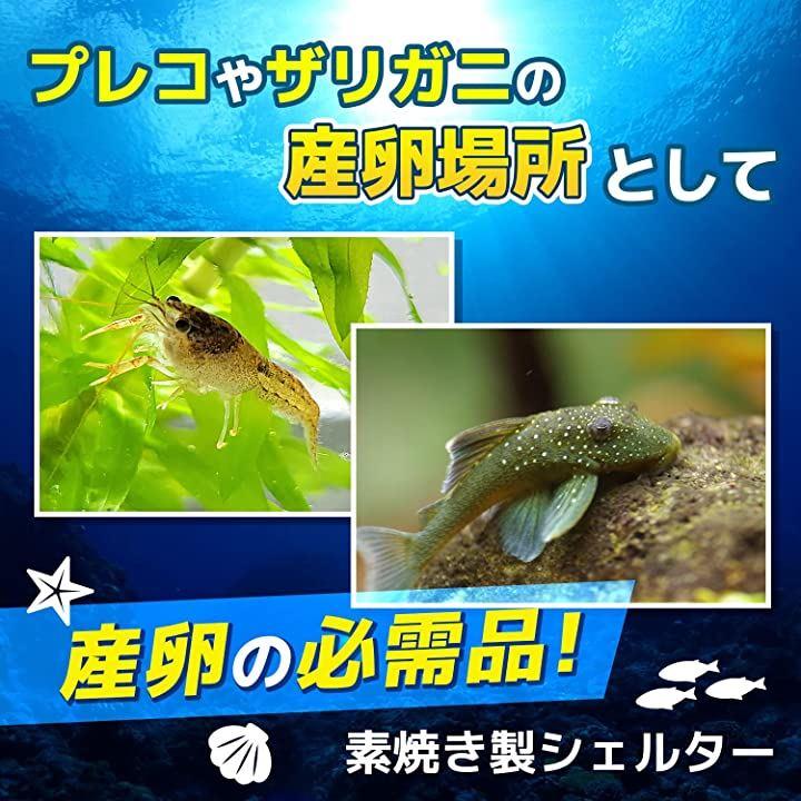 ・魚、稚魚、プレコ、ザリガニ、エビなどの隠れ家(シェルター)としてもオススメなので、成魚から隠れたり、休憩したり、暗いところが好きなお魚にもぜひお試しください。