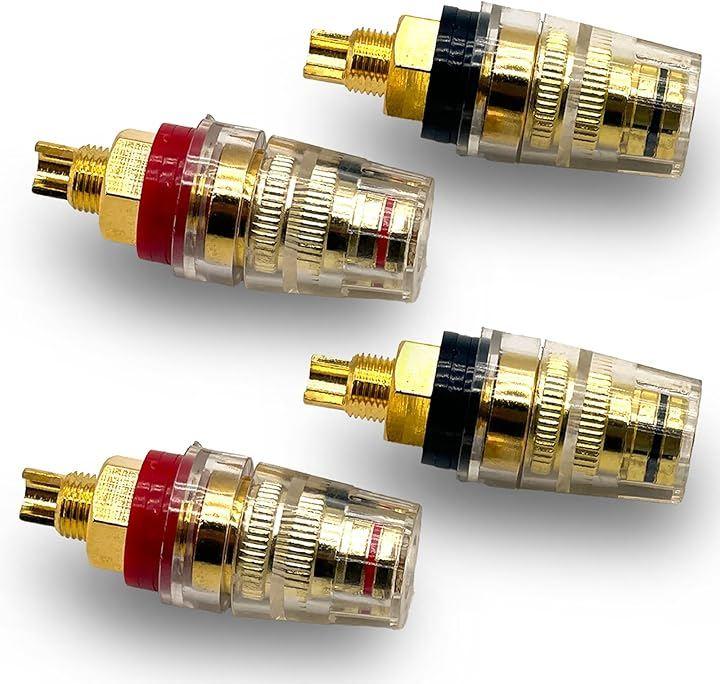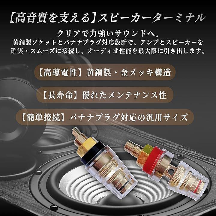 「高品質な音響端子」 スピーカーターミナル端子は、真鍮製コアに金メッキ加工を施した構造で、電気伝導性と耐食性に優れています。