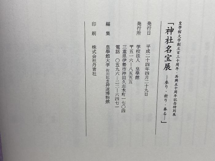 商品名:特別展 神社名宝展 -参り・祈り・奉るー 学校法人皇學館 2012年