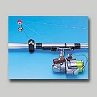 竿尻側にベルトで固定し、ラインホルダーのゴムのすき間に道糸を挟み、ネジで好みの強さで外れるように調節して下さい。これで活きアジの引っ張り程度では外れず、アオリイカが乗った時に道糸がラインホルダーから外れ、鈴の音でアタリを知らせます。