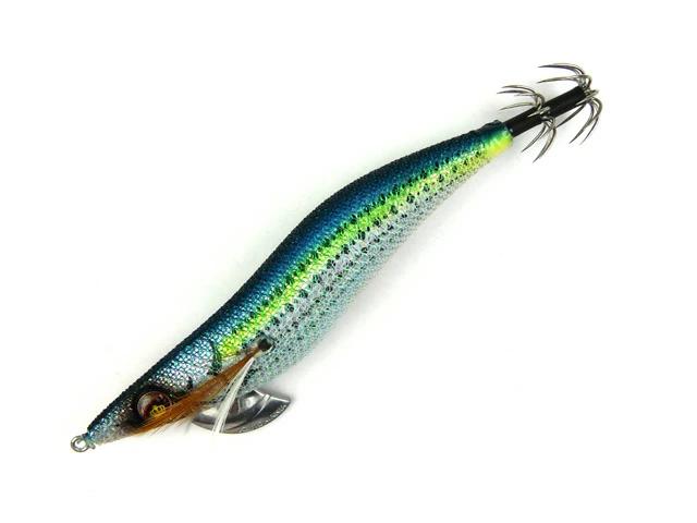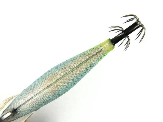 烏賊が認識しやすく、見やすいとされるBLUE夜光を使用しています。ブルーグローは、光の波長が長いので深場や、濁りにも効果的。