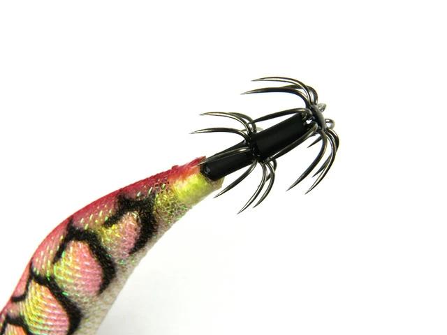 イカが抱きやすいフォール姿勢の約45度で、1mを約4秒の沈降速度。ボディの空気量を多くしてるので、沈下姿勢が安定した状態で、ゆっくりと沈んでいきます。ほ、セミオートマチックで、烏賊が抱きやすくなるように考えて作ってるので、3回シャクってフリーフォールで、簡単に抱いてきます。もちろん初心者から上級者まで使えますので、慣れてくればエギを自由自在に動かすことが出来ます。