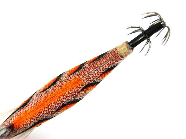 イカが抱きやすいフォール姿勢の約45度で、1mを約4秒の沈降速度。ボディの空気量を多くしてるので、沈下姿勢が安定した状態で、ゆっくりと沈んでいきます。ほ、セミオートマチックで、烏賊が抱きやすくなるように考えて作ってるので、3回シャクってフリーフォールで、簡単に抱いてきます。もちろん初心者から上級者まで使えますので、慣れてくればエギを自由自在に動かすことが出来ます。
