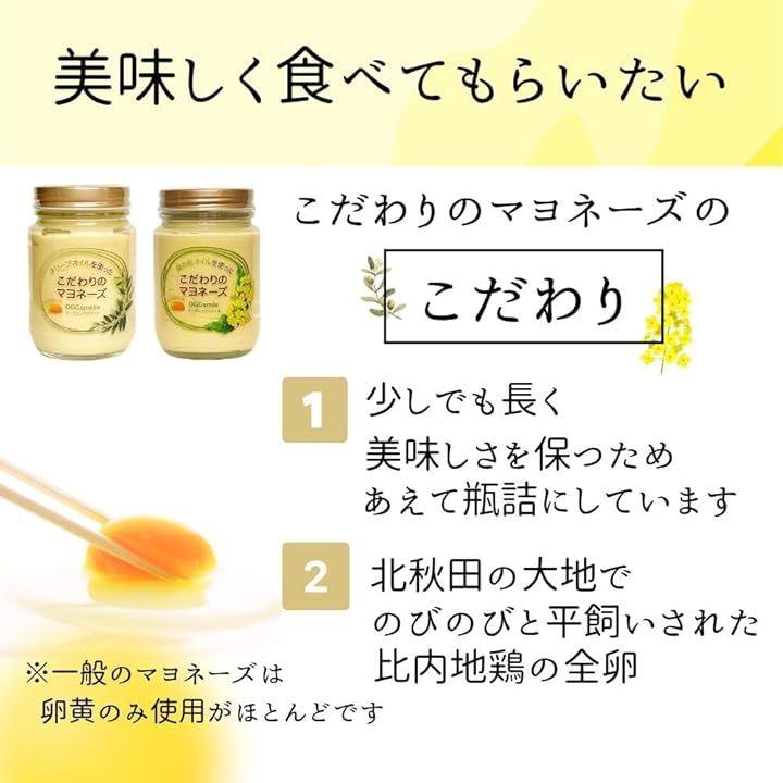 「秋田比内地鶏の全卵使用」日本三大美鶏に数えられる、希少な秋田比内地鶏の全卵を贅沢に使用。。「こだわりのマヨネーズ」は、比内地鶏の卵を丸ごと使っています。