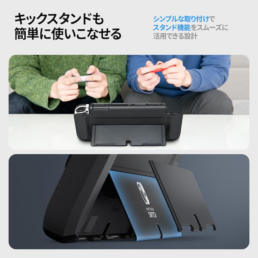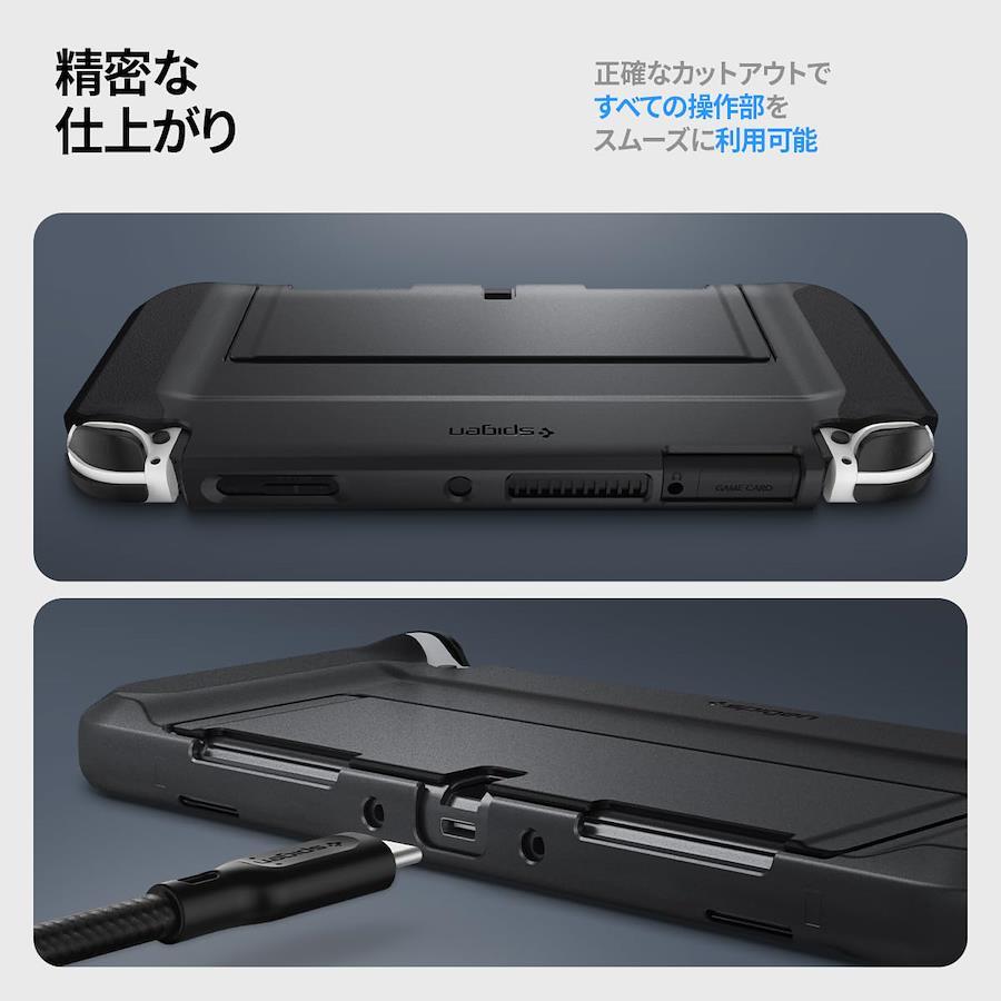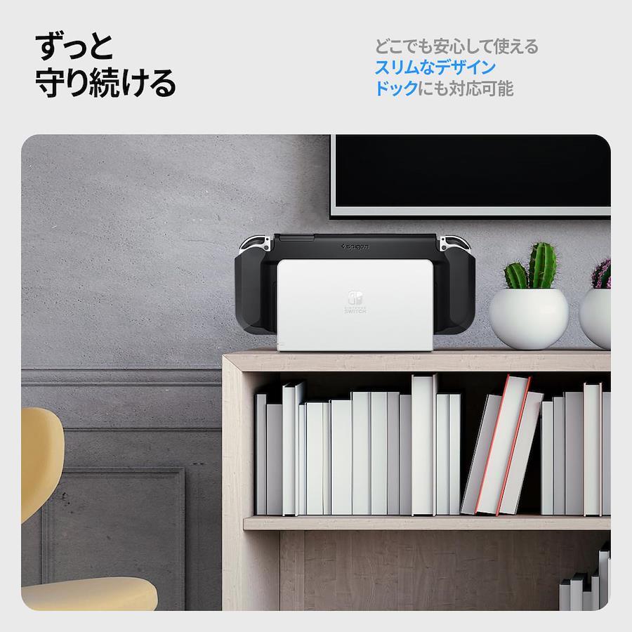 【対応機種】本製品はNintendo Switch 有機EL専用でございます。Nintendo Switch、Nintendo Switch Liteモデルには対応しないため、予めご了承ください。【スリムなデザインでドック対応】持ちやすいスリムなデザインで、カバーをつけたままドックに対応し、Joy-conがカバーに引っ付かず気楽に取り外すこともできます。【キックスタンド保護】スタンドカバーが含まれております。粘着テープで簡単にキックスタンドにカバーをつき、switch背面のキックスタンドも保護することができます。【丈夫なTPU二重構造】Spigenの先端技術でできたTPUとPCの二重構造素材で、日常での衝撃から保護し、switch本体に傷がつくことを効果的に防止します。【グリップ感へのこだわり】快適な使い心地を追求されたデザインで、Switchを握る際に滑らないよう滑り止め加工をしました。操作感とグリップ感も抜群で、ボタン本来の押しやすさも追求しました。