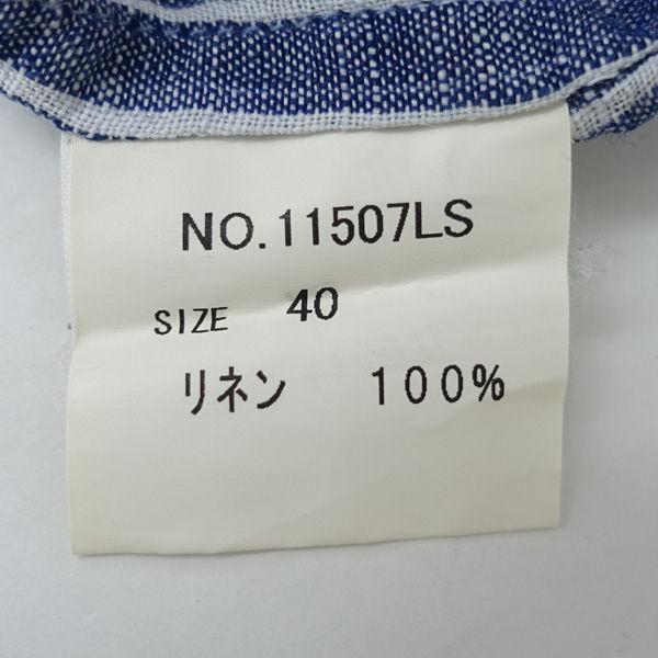 ・メーカー :SPINNER BAIT / スピナーベイト・製品型番 :11507LS・サイズ :表記サイズ:40,肩幅 (約cm):42,身幅 (約cm):47.5,着丈 (約cm):64,袖丈 (約cm):60,首周り(約cm):37.5,・色(柄)の系統:白系(ホワイト) 青系(ブルー)・デザイン :(メンズ)トップス/カジュアルシャツ・素材 :リネン100%