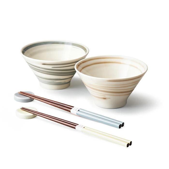 茶碗(直径12.8×高さ7cm、容量約370ml)、箸置き(直径3.8×高さ1cm)、箸×各2