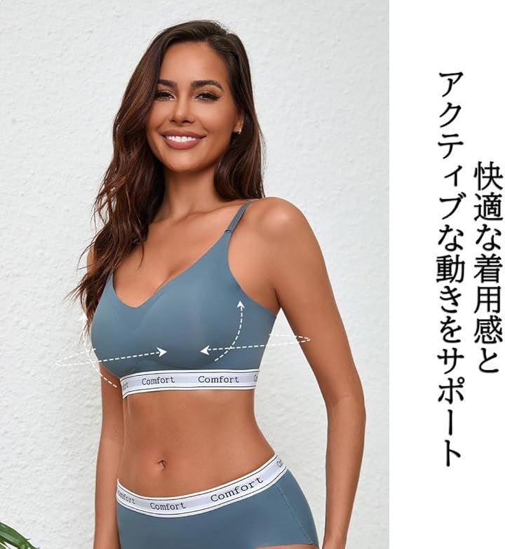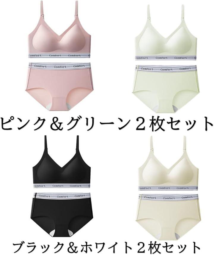 スポーツブラ、ノンワイヤー、ショーツが揃ったセット。