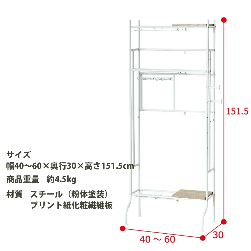 【商品サイズ(約)】幅40~60×奥行30×高さ151.5cm