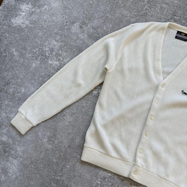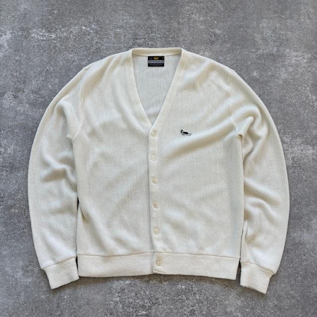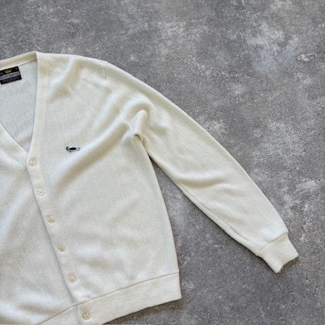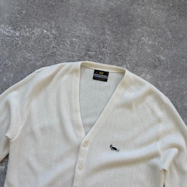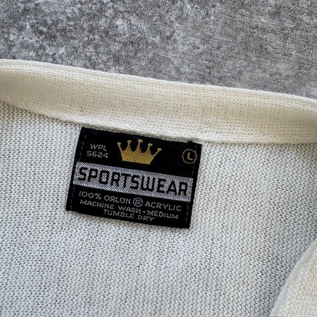 [SPORTS WEAR] 70s Vintage Acrylic Cardigan Knit Sweater Grunge Style Turtle Logo Black Tag 1970s (Size L)