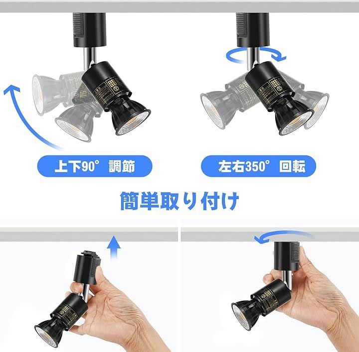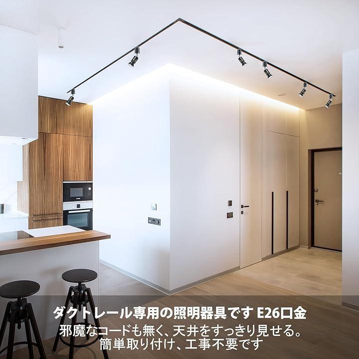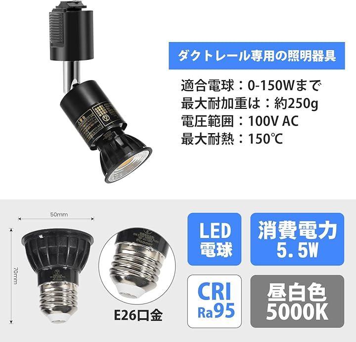 1、電球付き:5.5W E26 LED電球(6個)+ダクトレール用器具(6個)、5.5W(60W 相当)、全光束550lm、ビーム角度 90°、明るさの演色性Ra95、昼白色5000K照明 おしゃれ 照明器具。