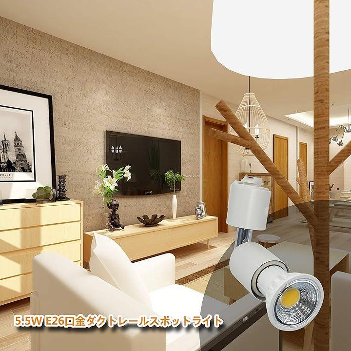 1.電球付き:E26 LED電球(3個)+ダクトレール用器具(3個)、5.5W(60W 相当)、全光束550lm、ビーム角度 90° 、明るさの演色性Ra95 、6000K 昼光色照明 おしゃれ 照明器具。