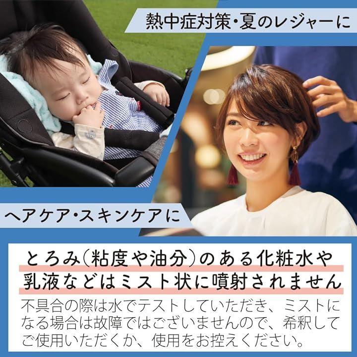 「使用上の注意」粘度の高い液体⦅とろみのある化粧水等⦆を使用すると、ミスト状に上手く噴射いたしません。