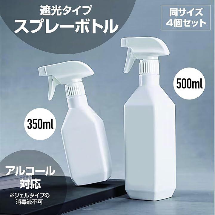 アルコール対応、遮光タイプのスプレーボトル4個セットです。