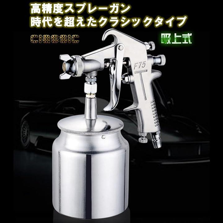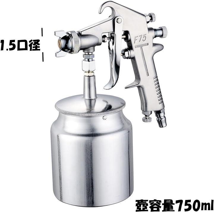 「規格」塗装用のエアースプレーガンの重力式、吸い上げ式の下壺タイプ 重心が下にくる吸い上げ式で、安定した作業が可能となります。
