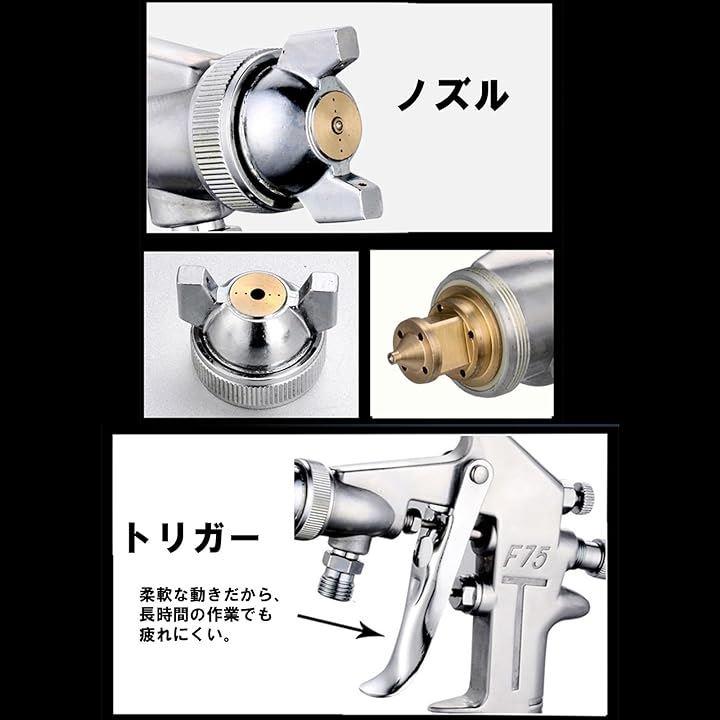 「高品質アルミ合金ガン本体」塗装ガン本体はアルミニウム合金で鍛造されており、表面には複数の精密研磨処理が施されており、電気銅 - ニッケル - クロム多層高次処理により耐摩耗性と耐久性、耐熱性や切れ味に優れていて、防錆力が非常に高いエアースプレーガンセットです。