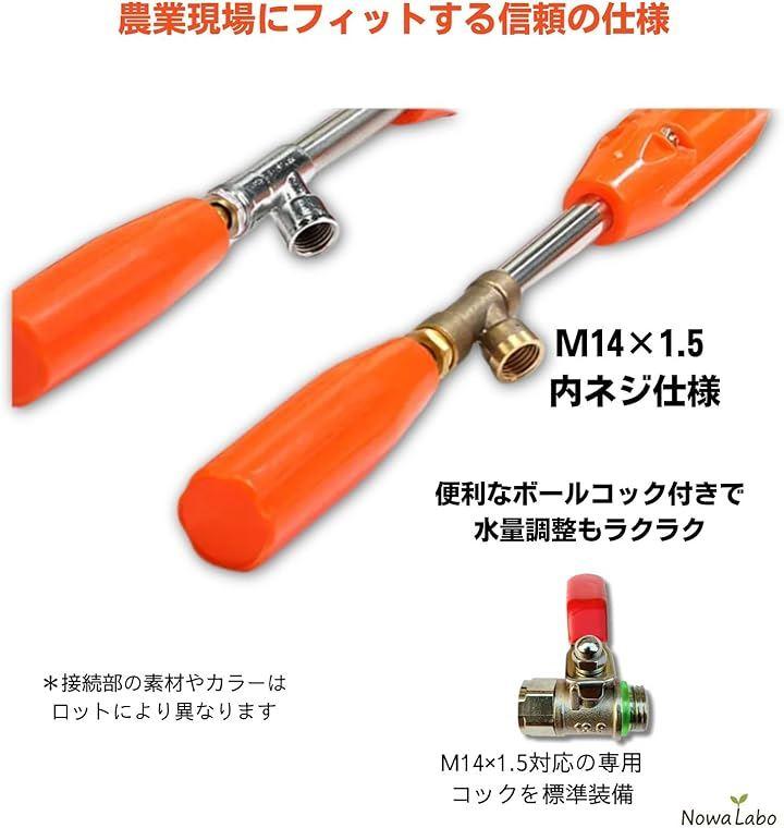 「手元でオンオフ操作できるコック付き」 噴霧の開始・停止を手元で自在にコントロールできるコック付属しています。