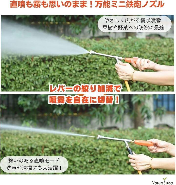 「農業にも洗車にも使える多用途設計」 一般的な小型エンジン動力噴霧器(4MPa・24L/min程度/8.5mmホース)に適合する汎用性の高いノズル。