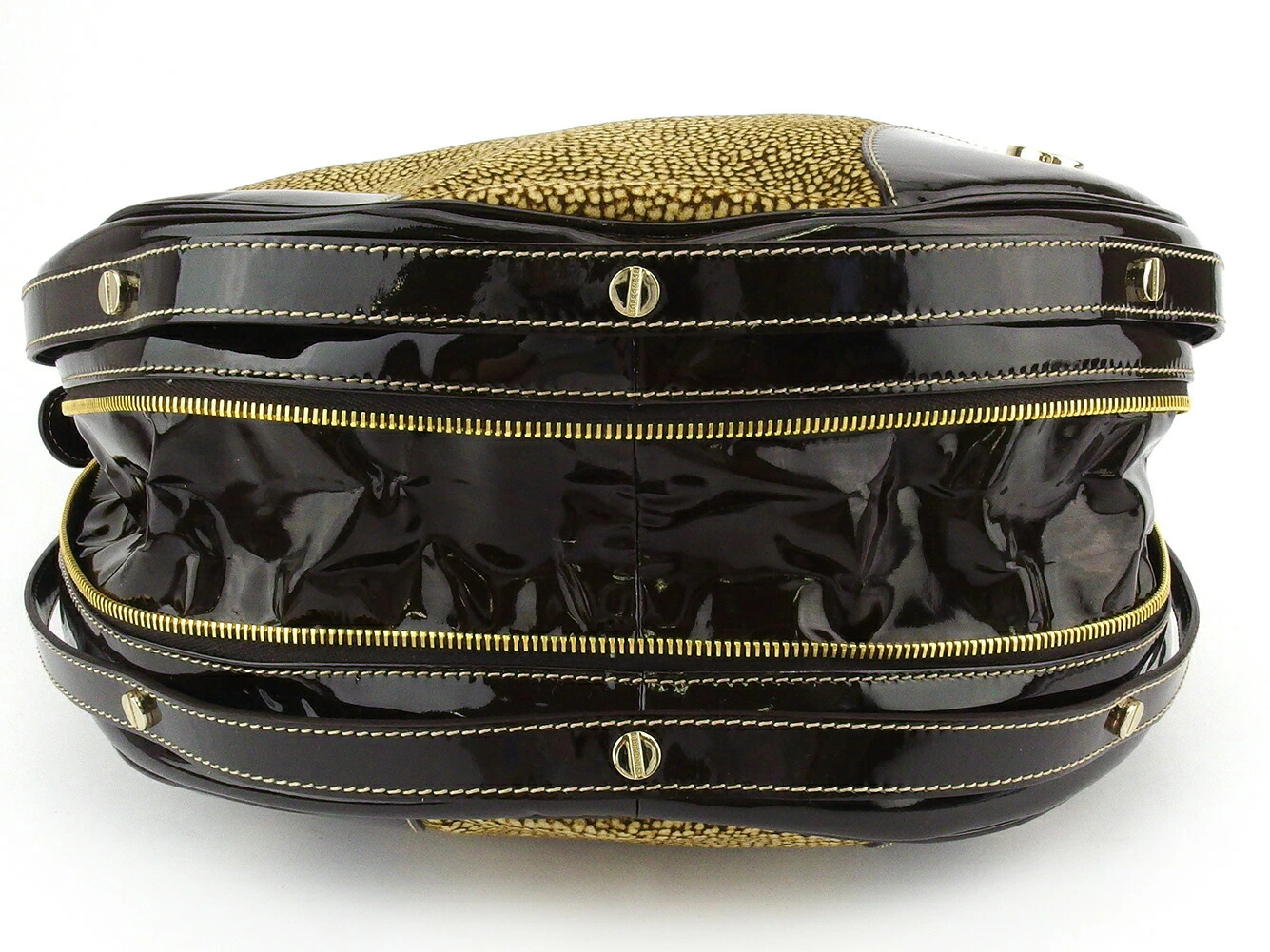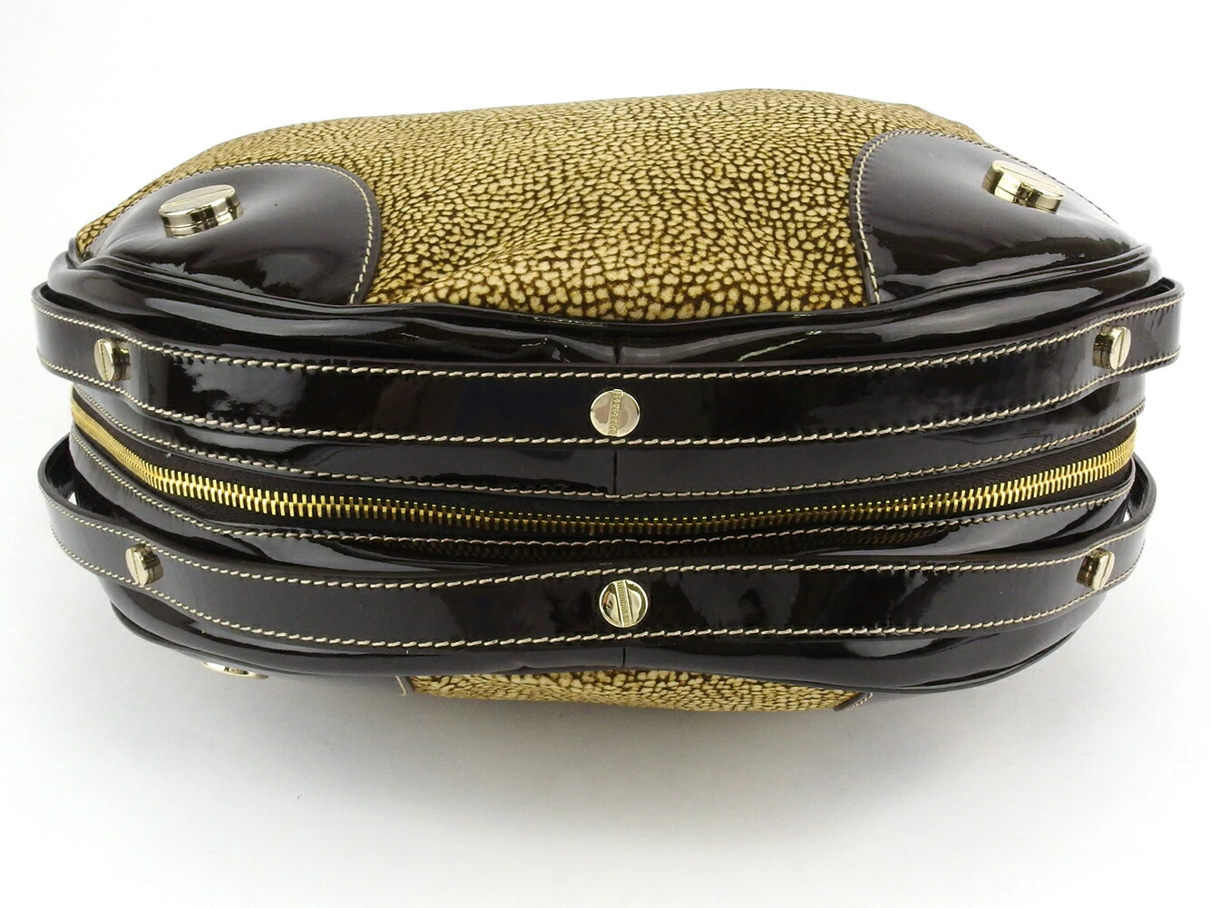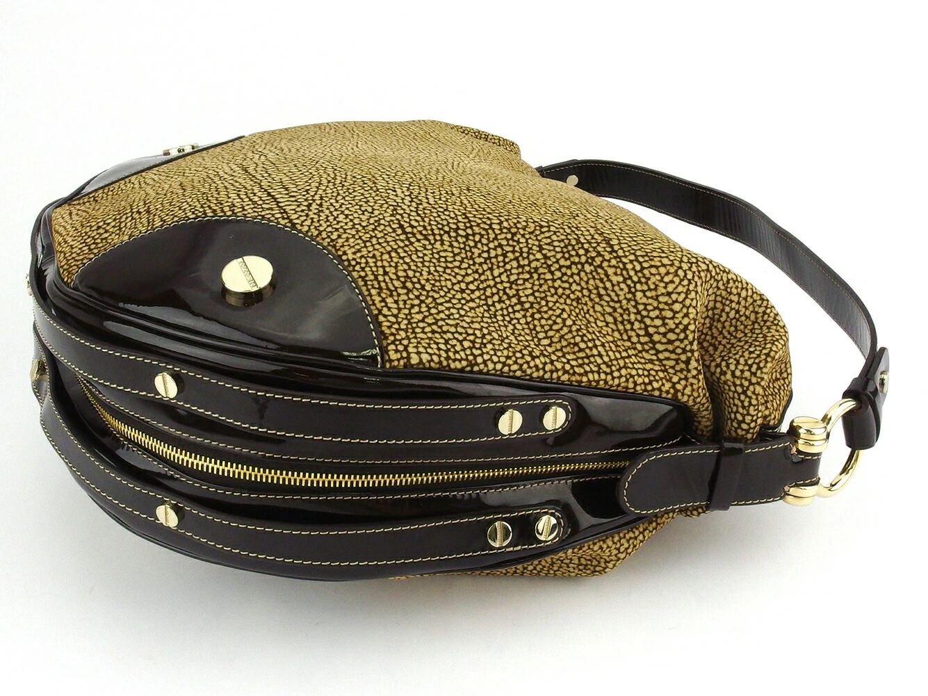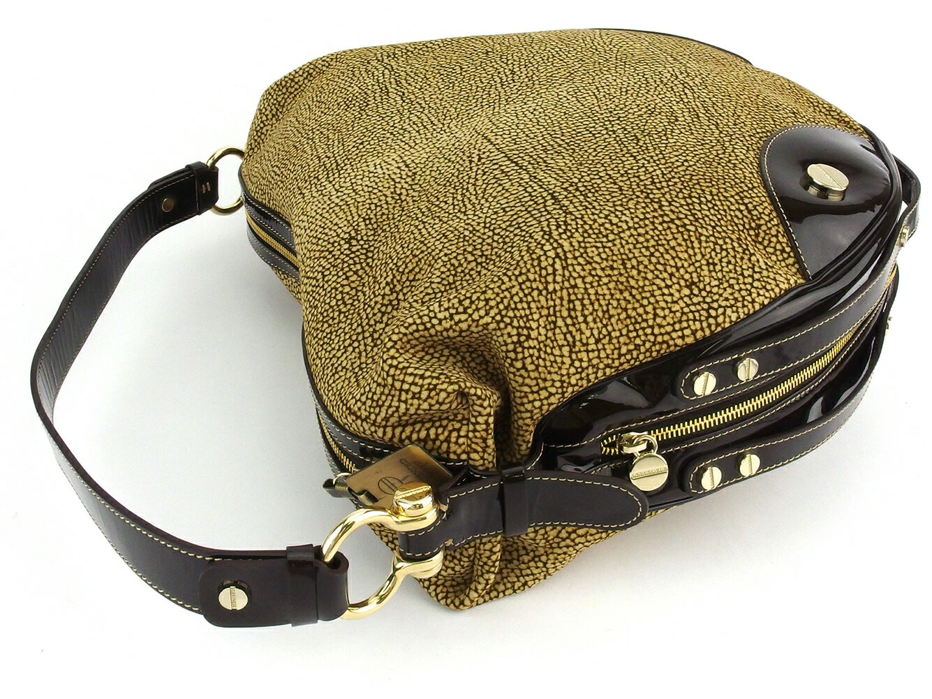 [Spring Sale ★ 30% Off Coupon] Borbonese Handbag with Quail Print in Beige, Brown, and Gold. Women's. Pre-owned. High-End Vintage.