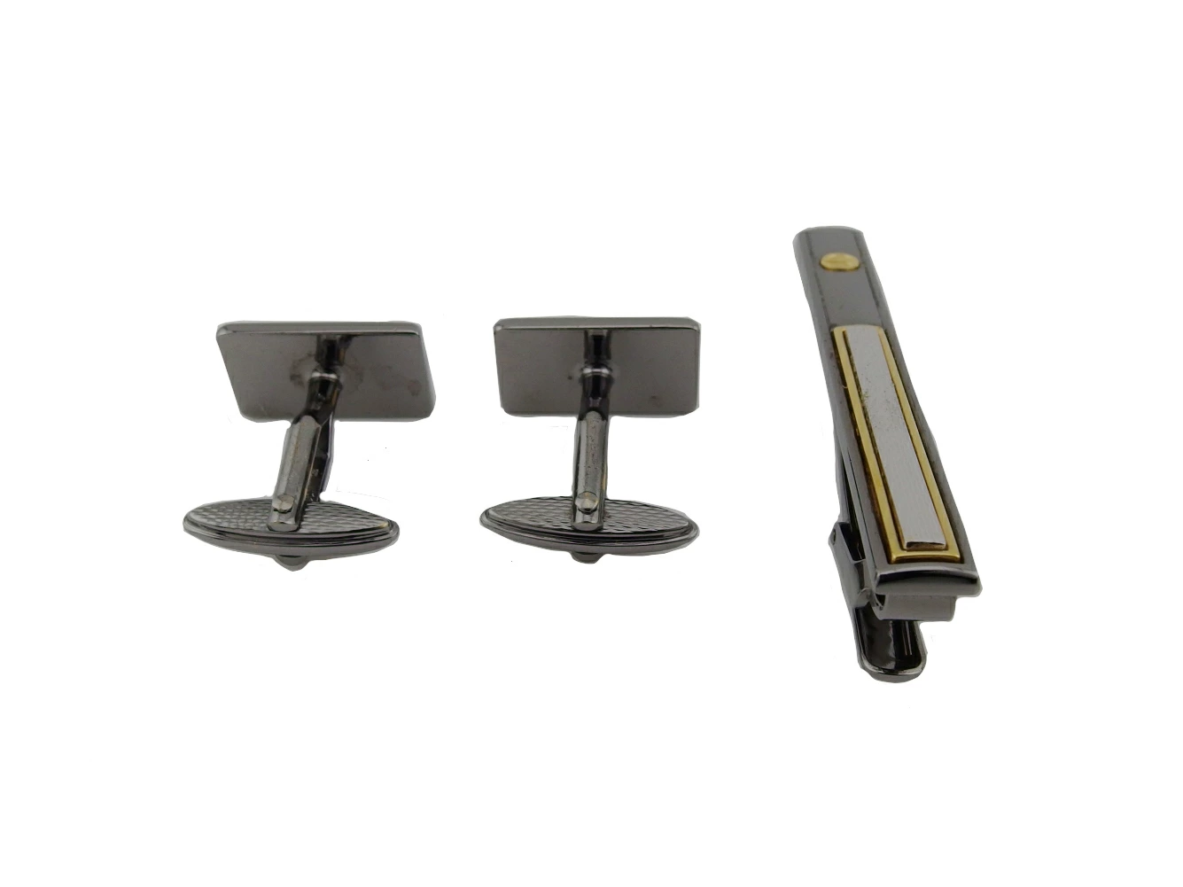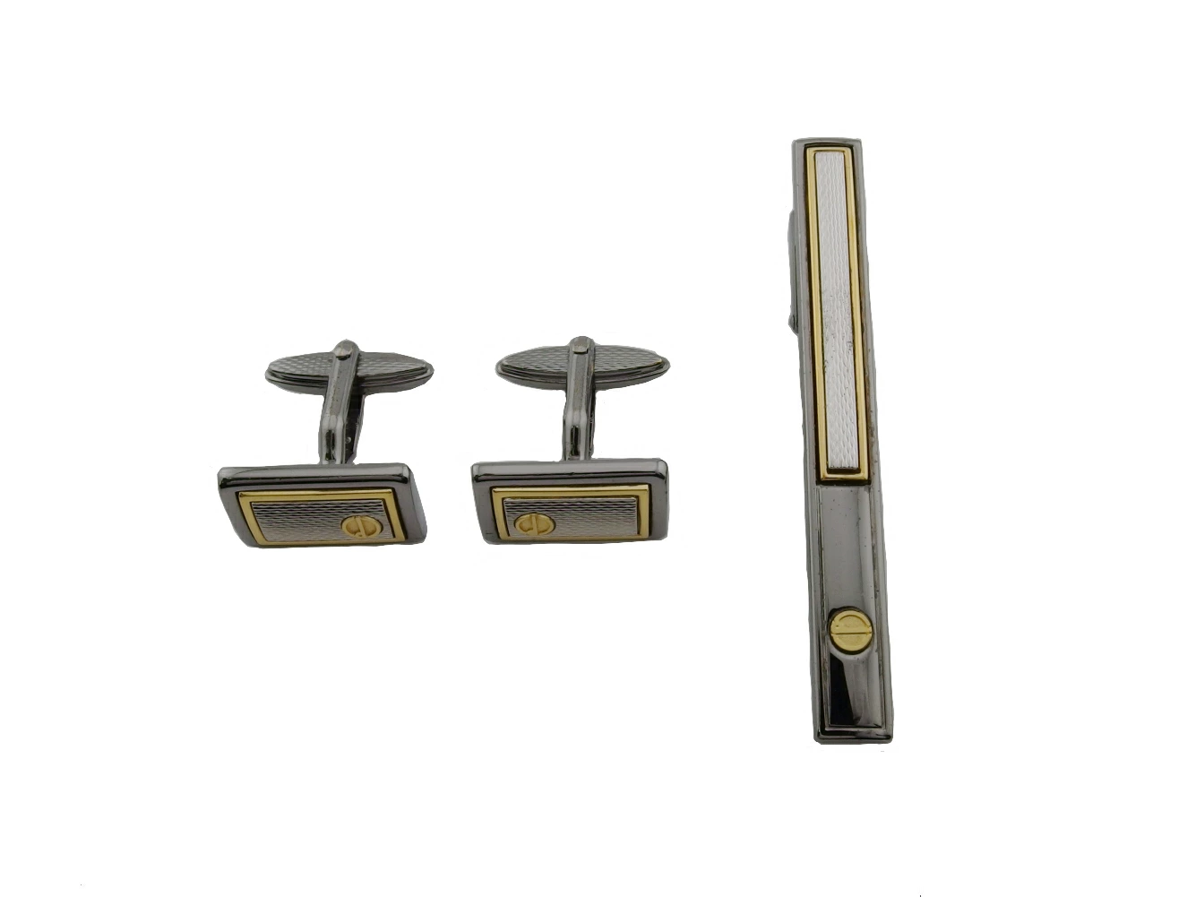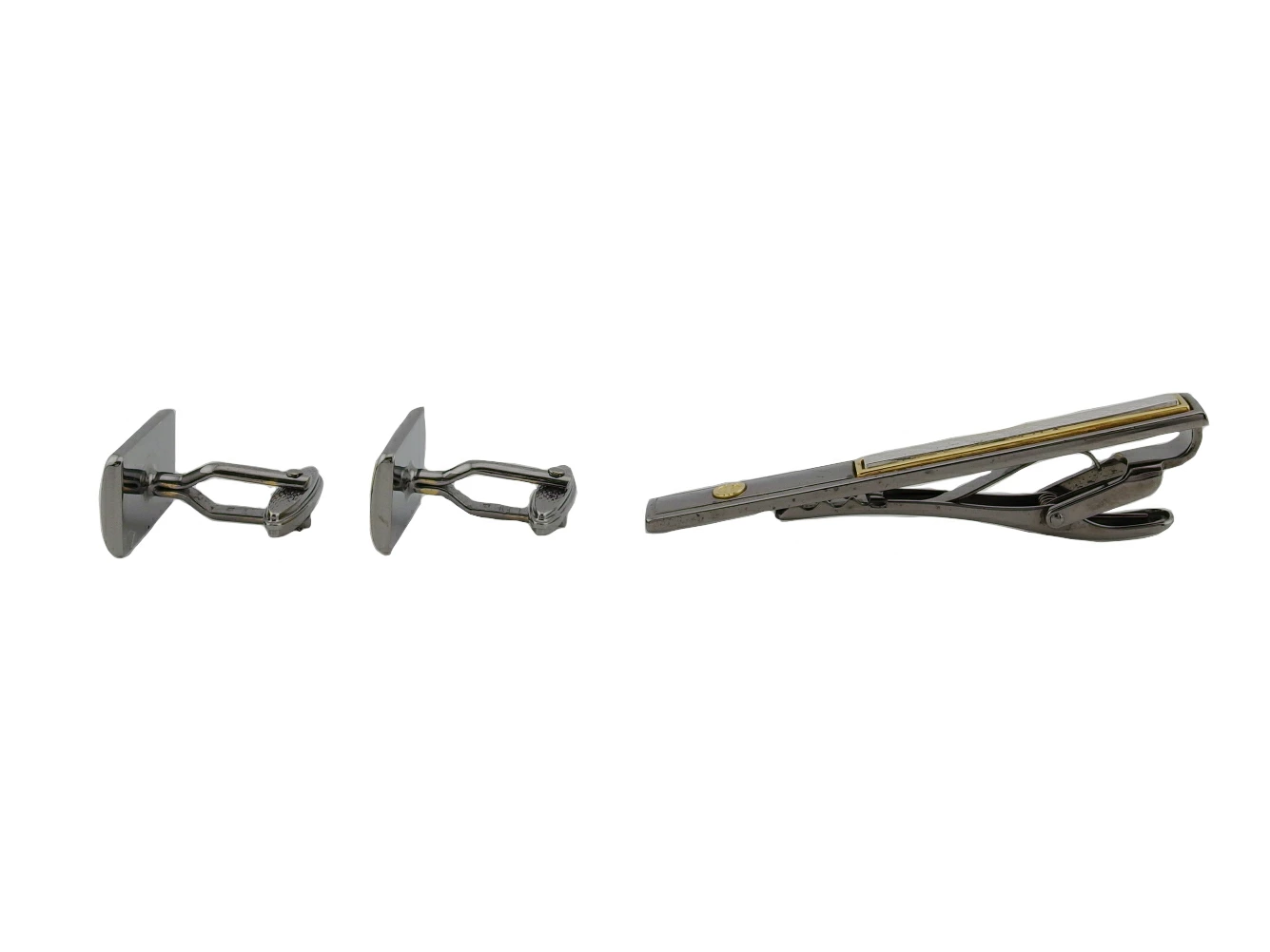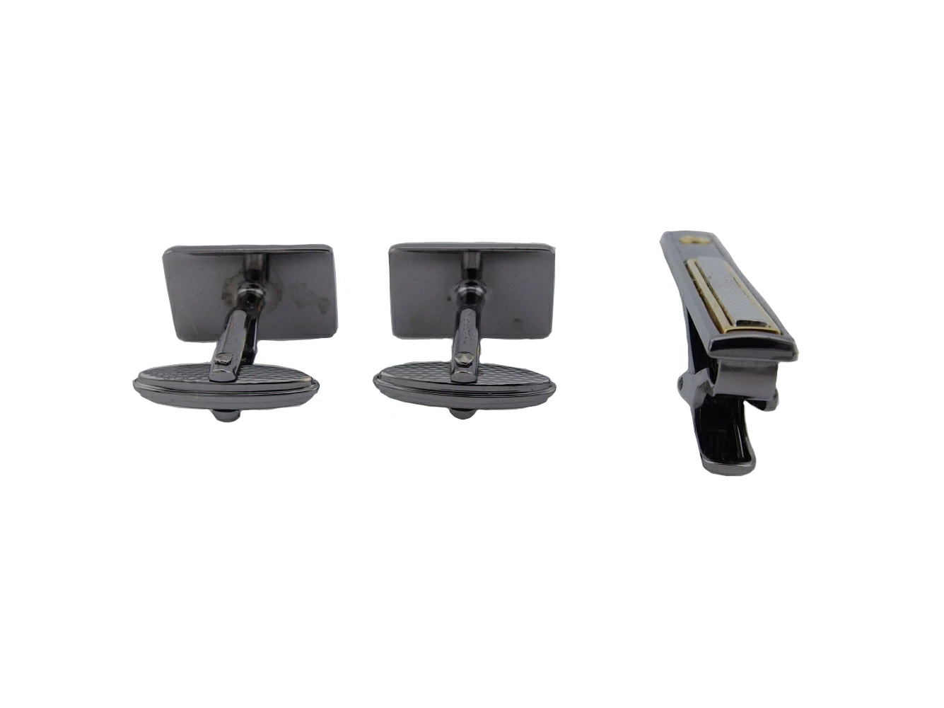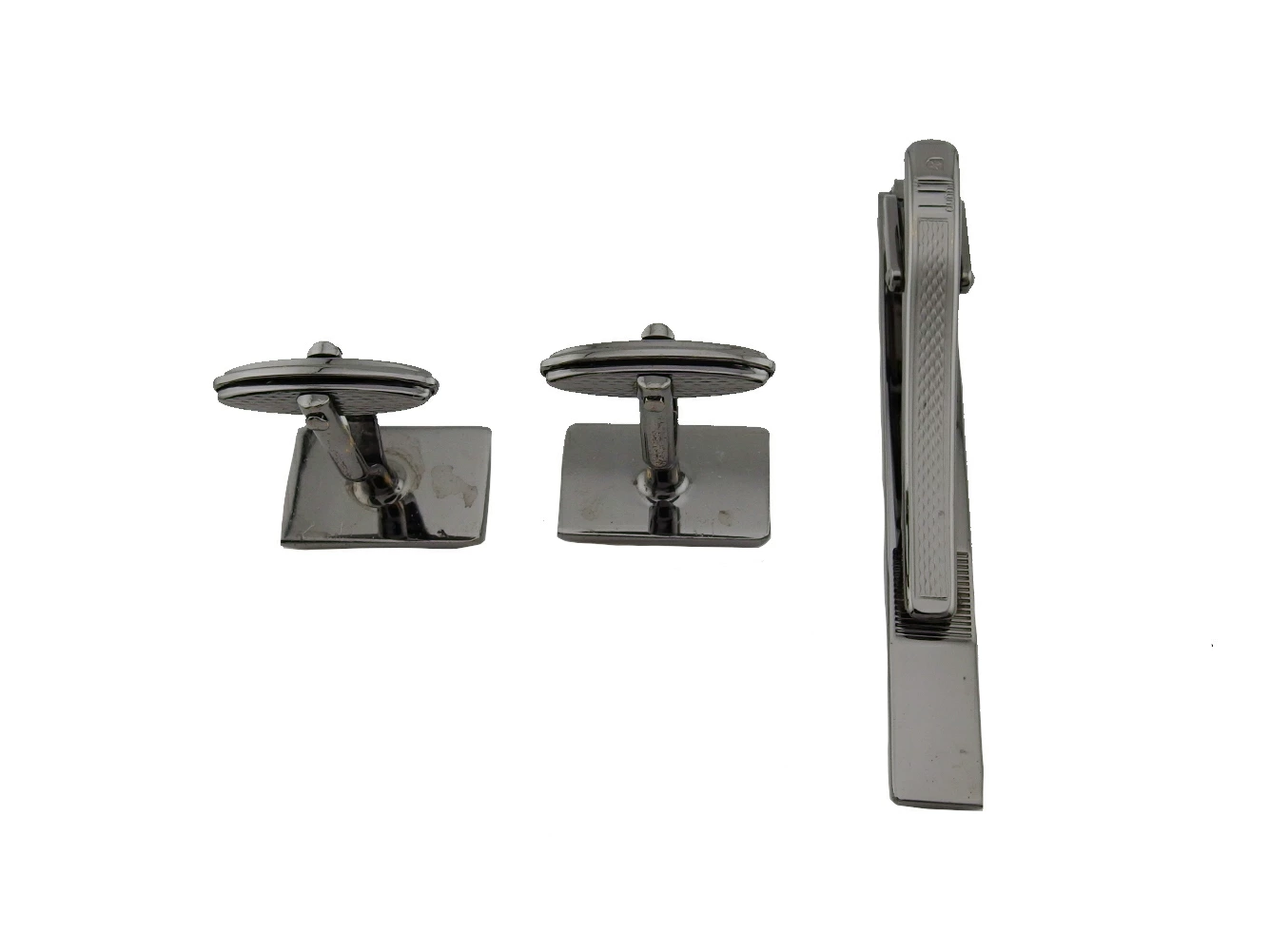 カフス(トップの縁部分に小傷)、タイピン(トップに小傷、溝部分に汚れ付着)あり。