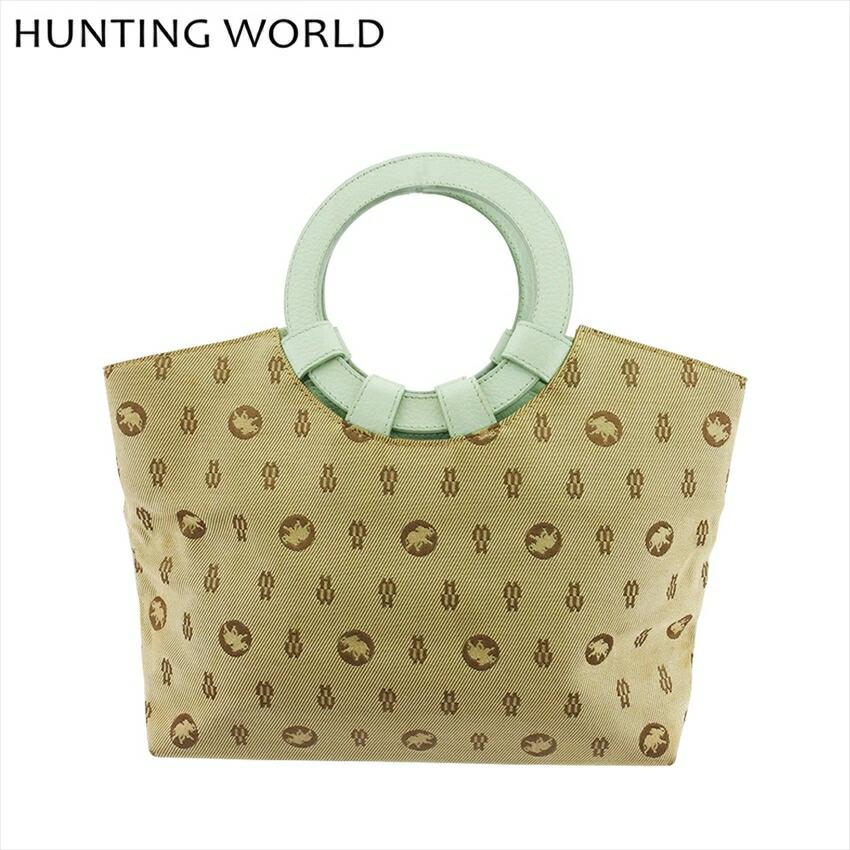 [Spring Sale ★ 30% Off Coupon] Hunting World Handbag with All-Over Print and Ring Handles, Beige, Brown, and Green, Men's, Pre-Owned, High-End, Vintage