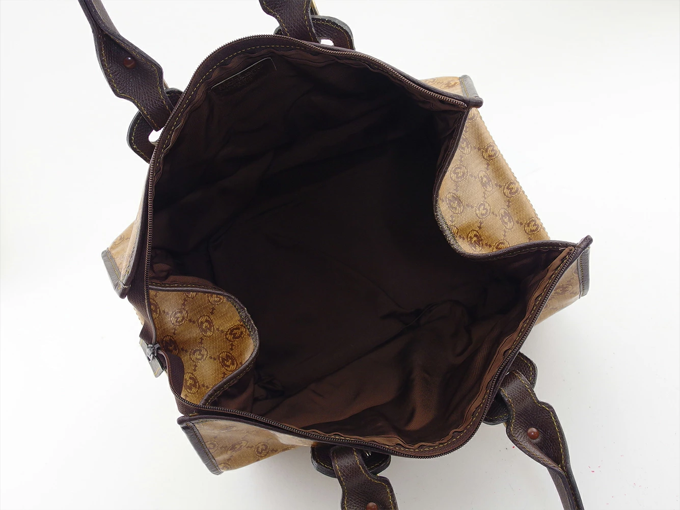 | コンディション | 全体の状態詳細:大きなダメージもなく、まだまだ十分ご使用いただけます。 外側:PVC(左側面に黒っぽい汚れ箇所、底部分のコバに汚れ)、レザー部分(若干のスレ、汚れ)、金具類(傷、汚れ、メッキハゲ、ファスナー金具にコーティングハゲ)あり。 内側:裏地(汚れ、変色箇所)あり。 中古品のため 目立たない 傷 汚れ などの一般的使用感がある場合がございます。ご了承ください。 |